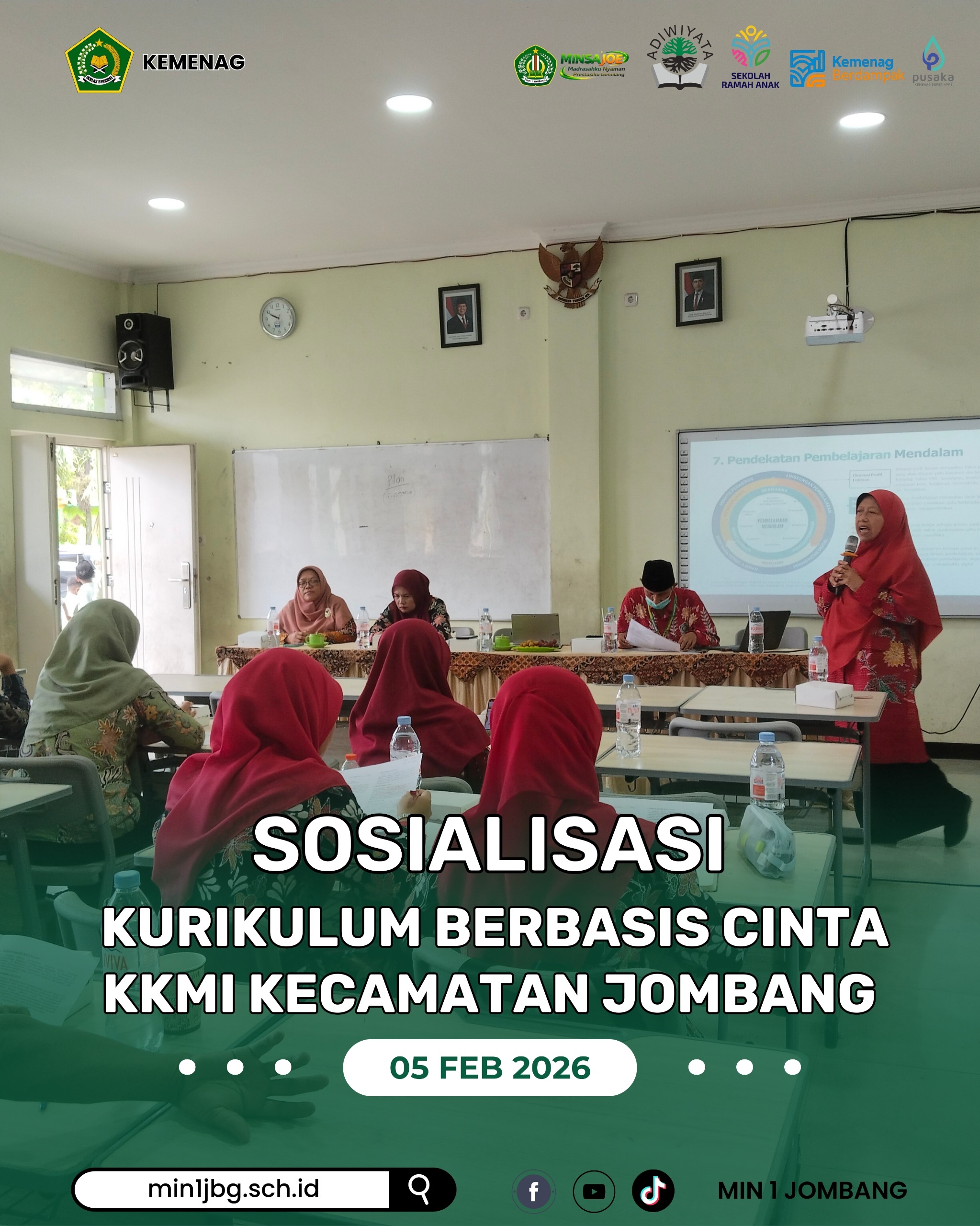 Dalam rangka meningkatkan mutu pembelajaran serta memperkuat karakter peserta didik, Kelompok Kerja Madrasah Ibtidaiyah (KKMI) Kecamatan Jombang menyelenggarakan Sosialisasi Kurikulum Berbasis Cinta yang bertempat di gedung MIN 1 Jombang pada Kamis, 5 Februari 2026.